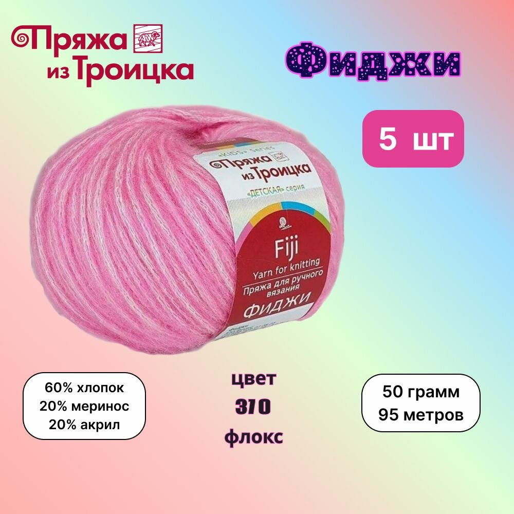 10 цен на Троицкая пряжа для вязания Фиджи Флокс (370) 5 мотков 50 г/95 м (60% хлопок, 20% мериносовая шерсть, 20% акрил) fiji