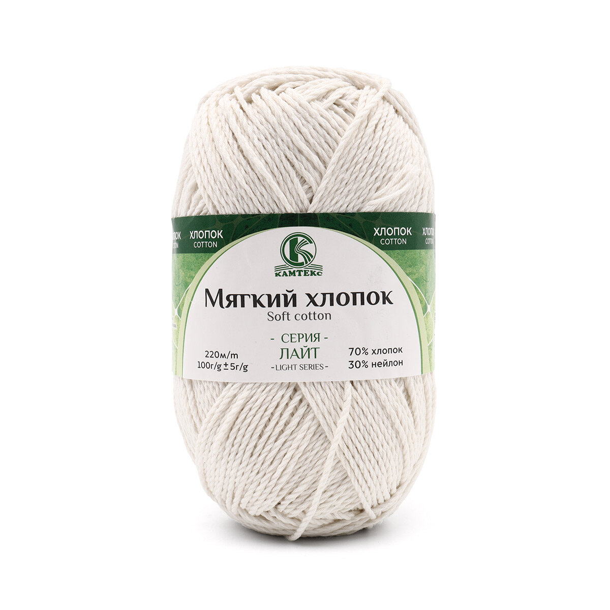 Пряжа Камтекс "Мягкий хлопок", цвет: 188 - Топленое молоко, 1 шт, 70% хлопок, 30% нейлон 100 г 220 м 395 ₽