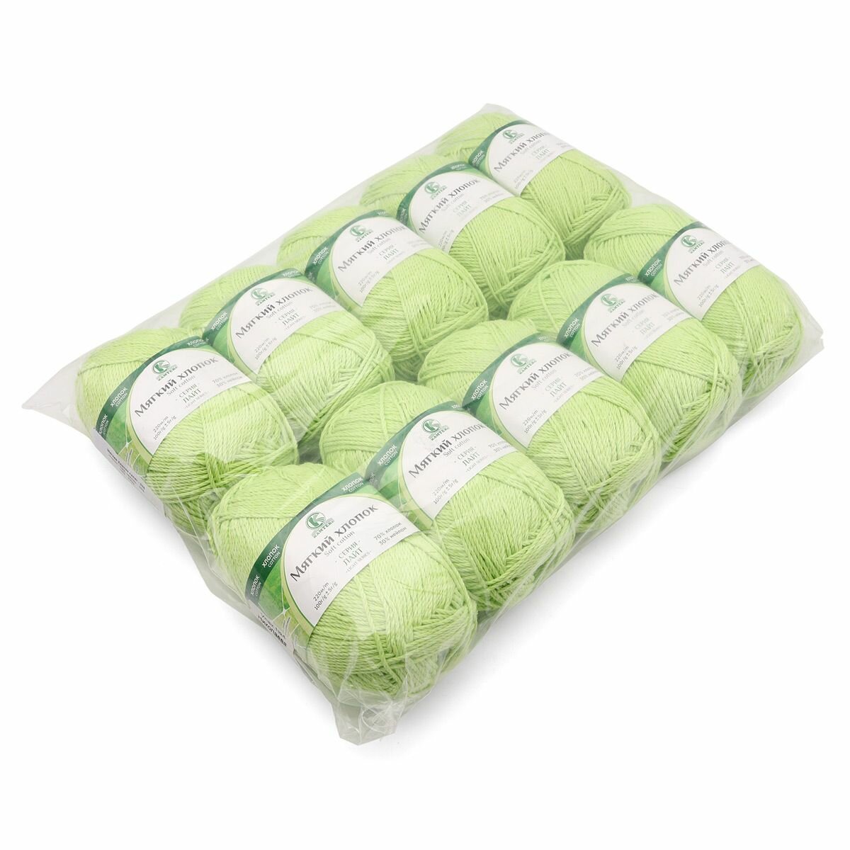 Пряжа для вязания Камтекс 'Мягкий хлопок' 100г, 220м (70% хлопок, 30% нейлон) (026 салат), 10 мотков информация: