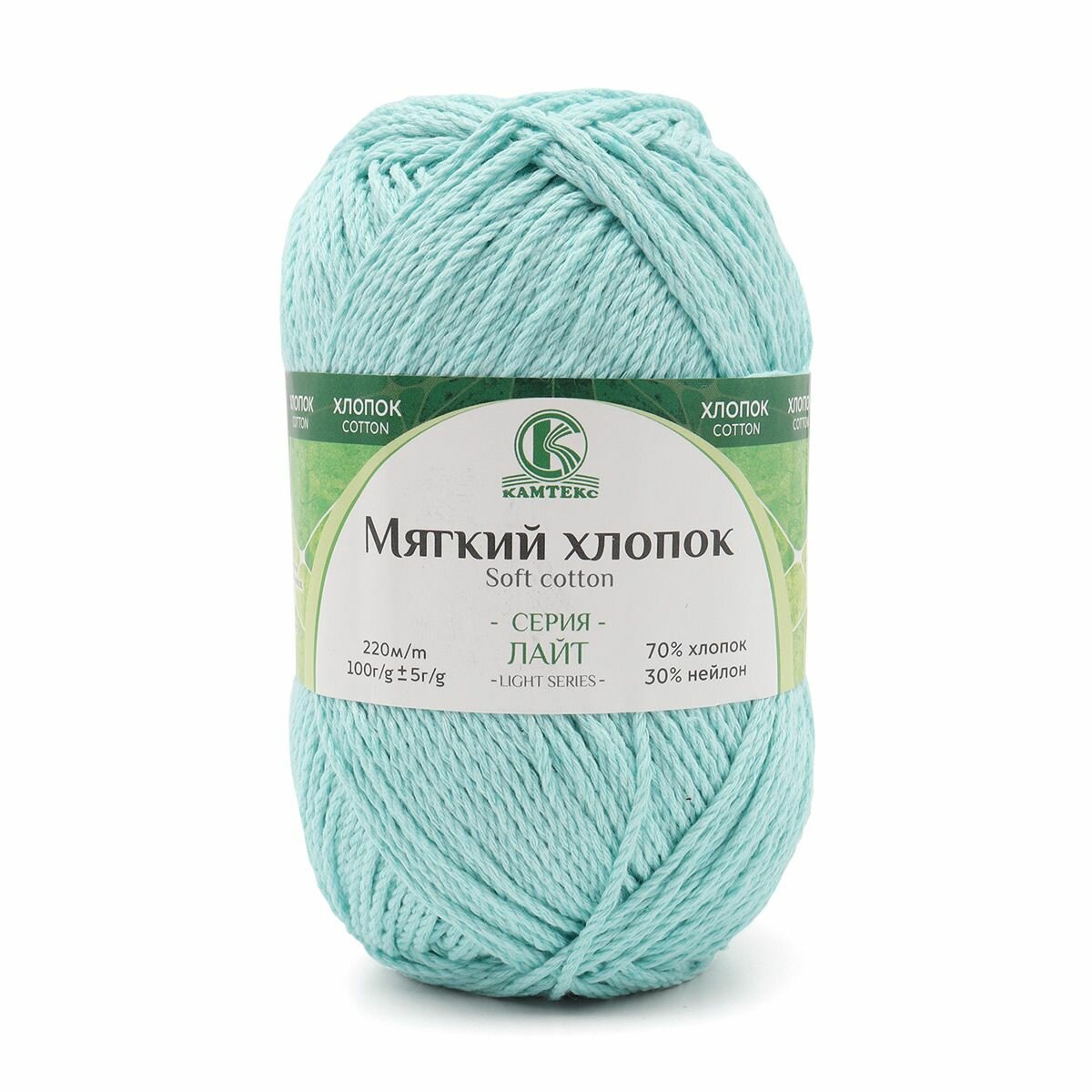Пряжа для вязания Камтекс 'Мягкий хлопок' 100г, 220м (70% хлопок, 30% нейлон) (023 Светлая бирюза), 10 мотков информация: