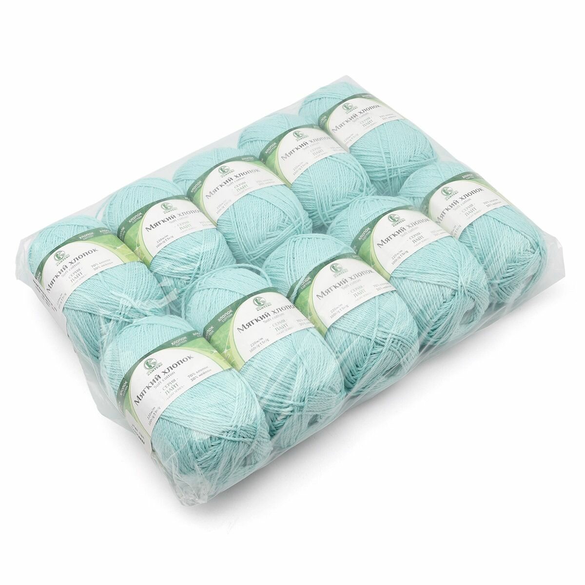 10 цен на Пряжа для вязания Камтекс 'Мягкий хлопок' 100г, 220м (70% хлопок, 30% нейлон) (023 Светлая бирюза), 10 мотков