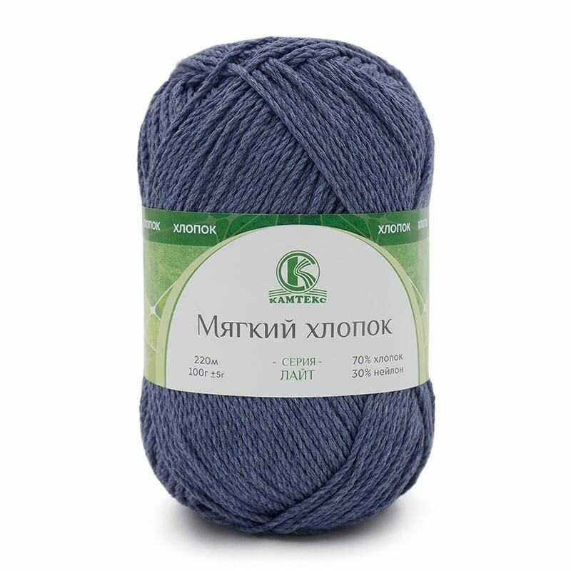 Пряжа Камтекс "Мягкий хлопок", цвет: 022 - Джинса, 1 шт, 70% хлопок, 30% нейлон 100 г 220 м 395 ₽