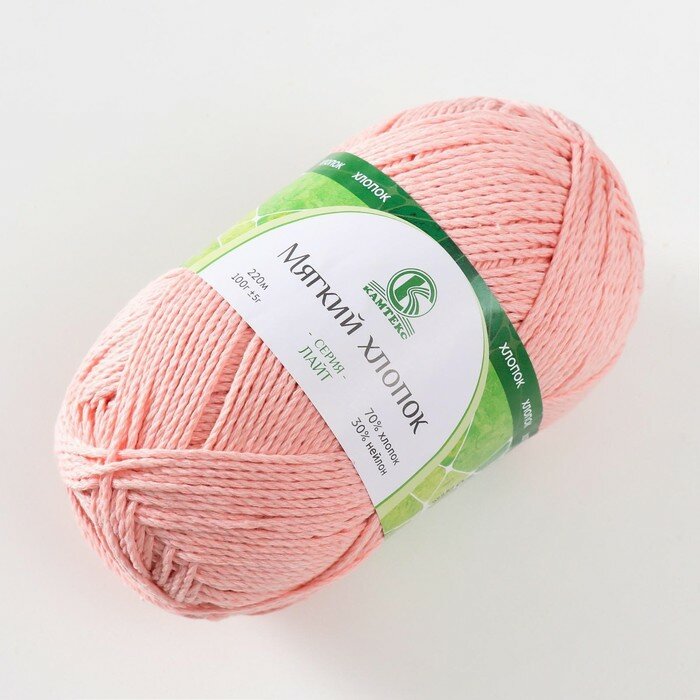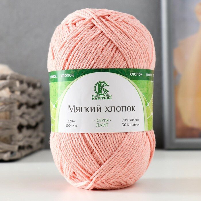 Пряжа Камтекс КТ "Мягкий хлопок" персик 037 70% хлопок, 30% нейлон 1 шт х 100г 220м информация:
