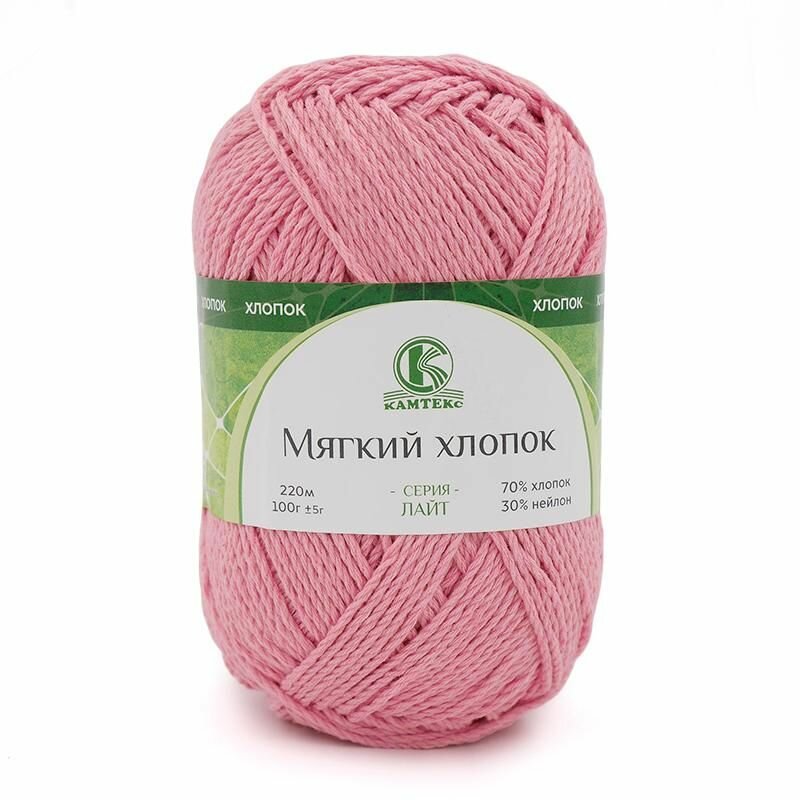 Пряжа Камтекс Мягкий хлопок цвет 056 розовый (100г/220м, упаковка 10 мотков) информация: