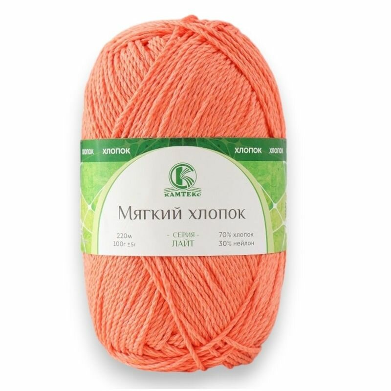 Пряжа Камтекс КТ "Мягкий хлопок" персик 037 70% хлопок, 30% нейлон 1 шт х 100г 220м