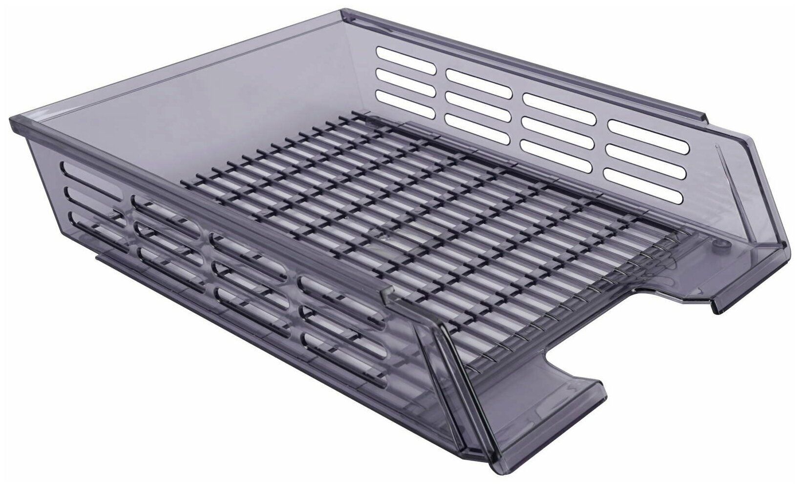 Лоток для бумаг горизонтальный СТАММ, с пазами, тонированный серый, 98057