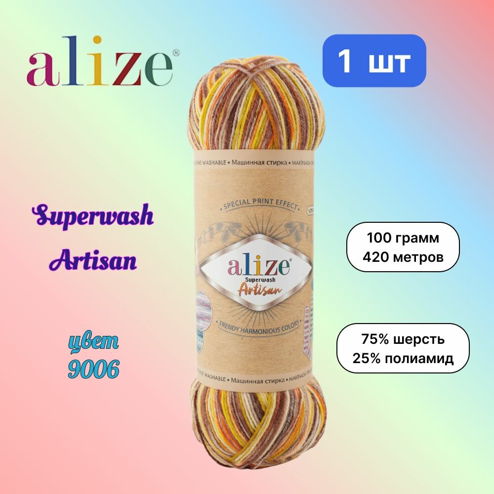 Пряжа Alize Superwash Artisan, цвет 9006, 4 мотка по 100 г/420 м (75% шерсть, 25% полиамид) ализе супервош артисан 1 338 ₽