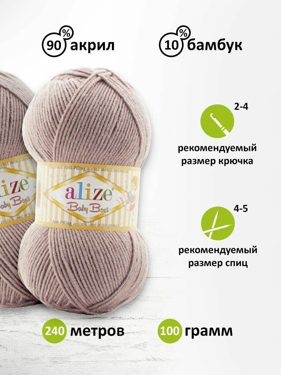 Отзывы на Пряжа для вязания ALIZE 'Baby Best', 100г, 240м (10% бамбук, 90% акрил) Антипиллинг (142 серая роза), 5 мотков