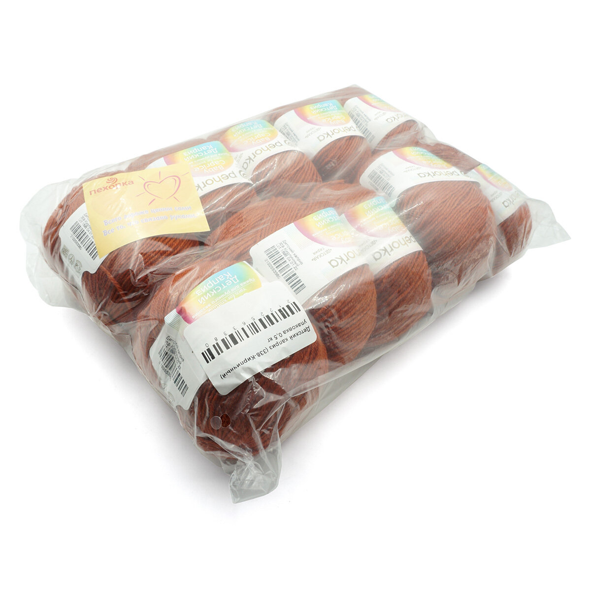 Пряжа для вязания Пехорка 'Детский каприз' 50г, 225м (мериносовая шерсть, фибра) (338-Кирпичный), 10 мотков информация: