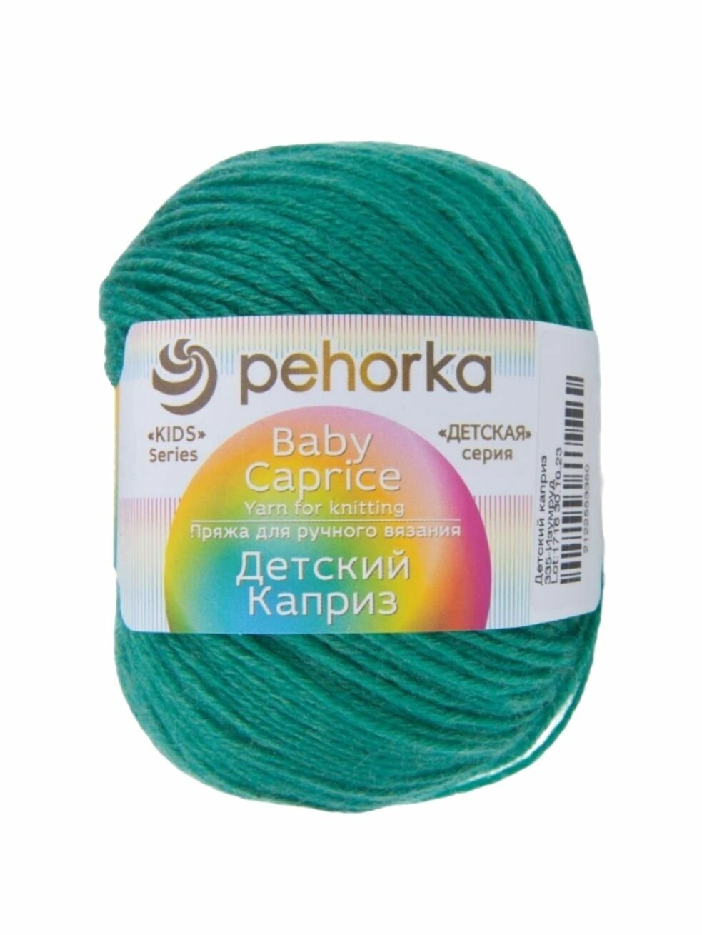 10 цен на Пряжа Пехорка Детский каприз Изумруд (335) 2 мотка 50 г / 225 м (50% шерсть 50% фибра)