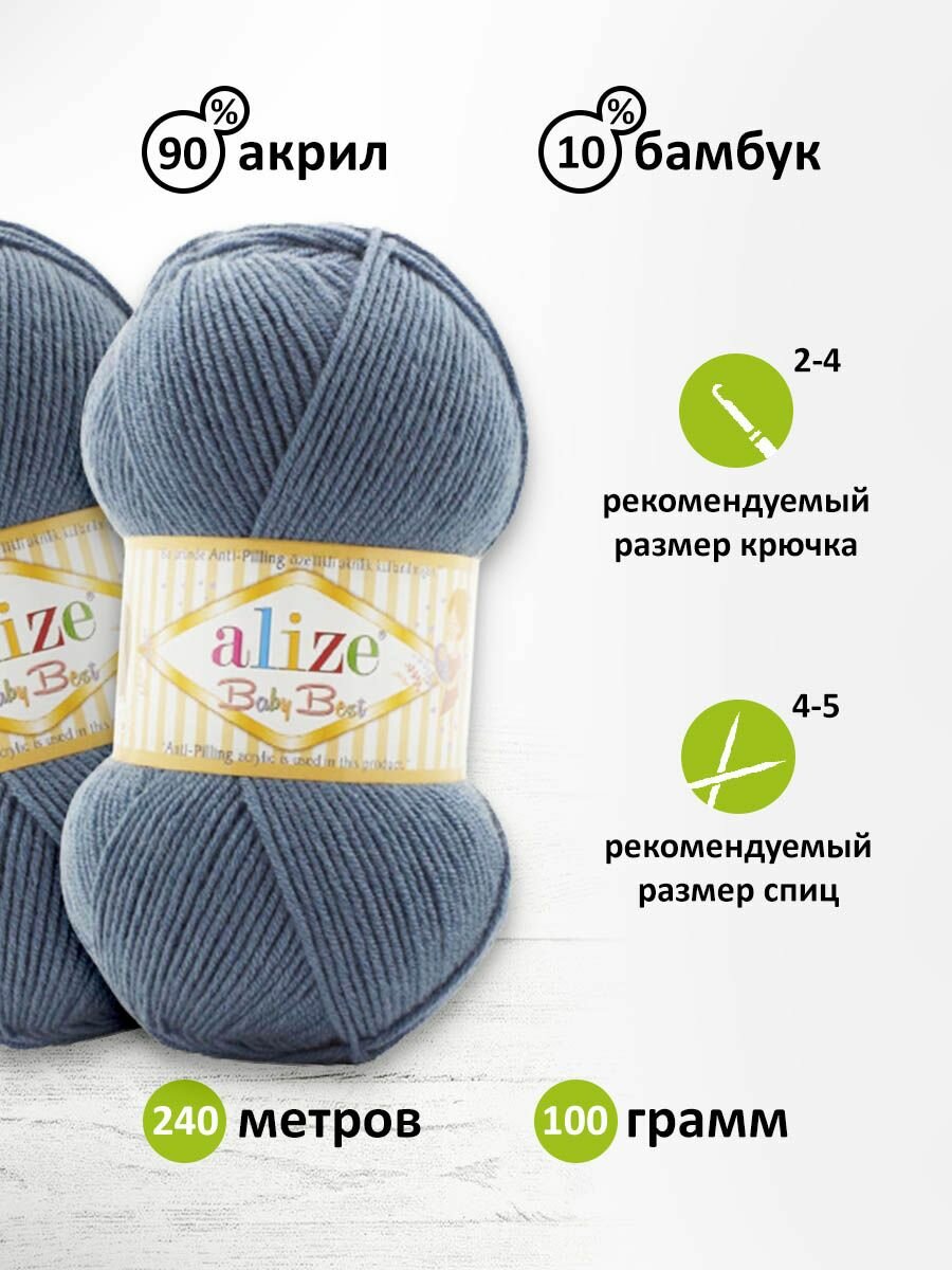 Отзывы на Пряжа для вязания ALIZE 'Baby Best', 100г, 240м (10% бамбук, 90% акрил) Антипиллинг (418 светлый индиго), 5 мотков