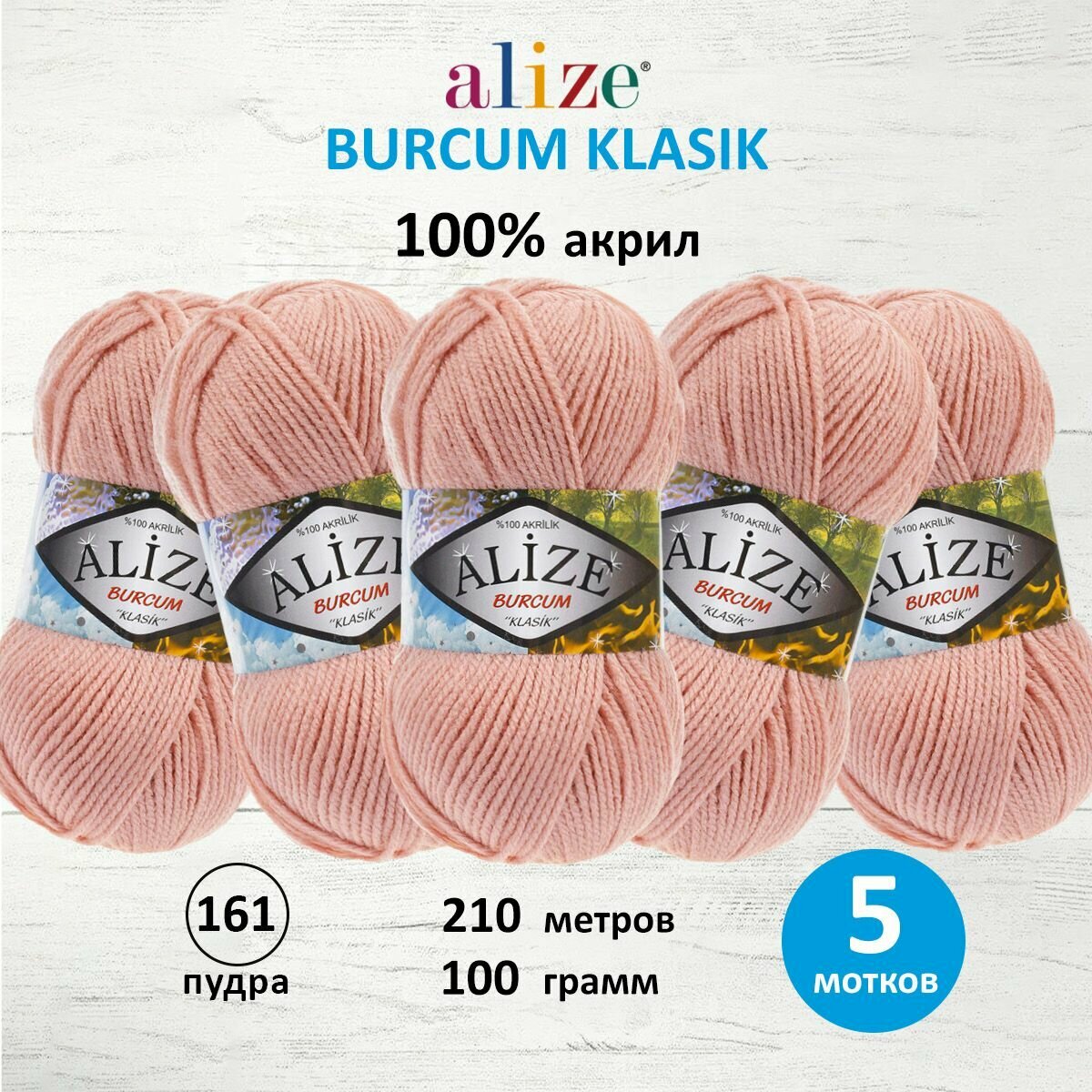 Пряжа для вязания ALIZE 'Burcum Klasik', 100г, 210м (100% Акрил) (161 пудра), 5 мотков информация:
