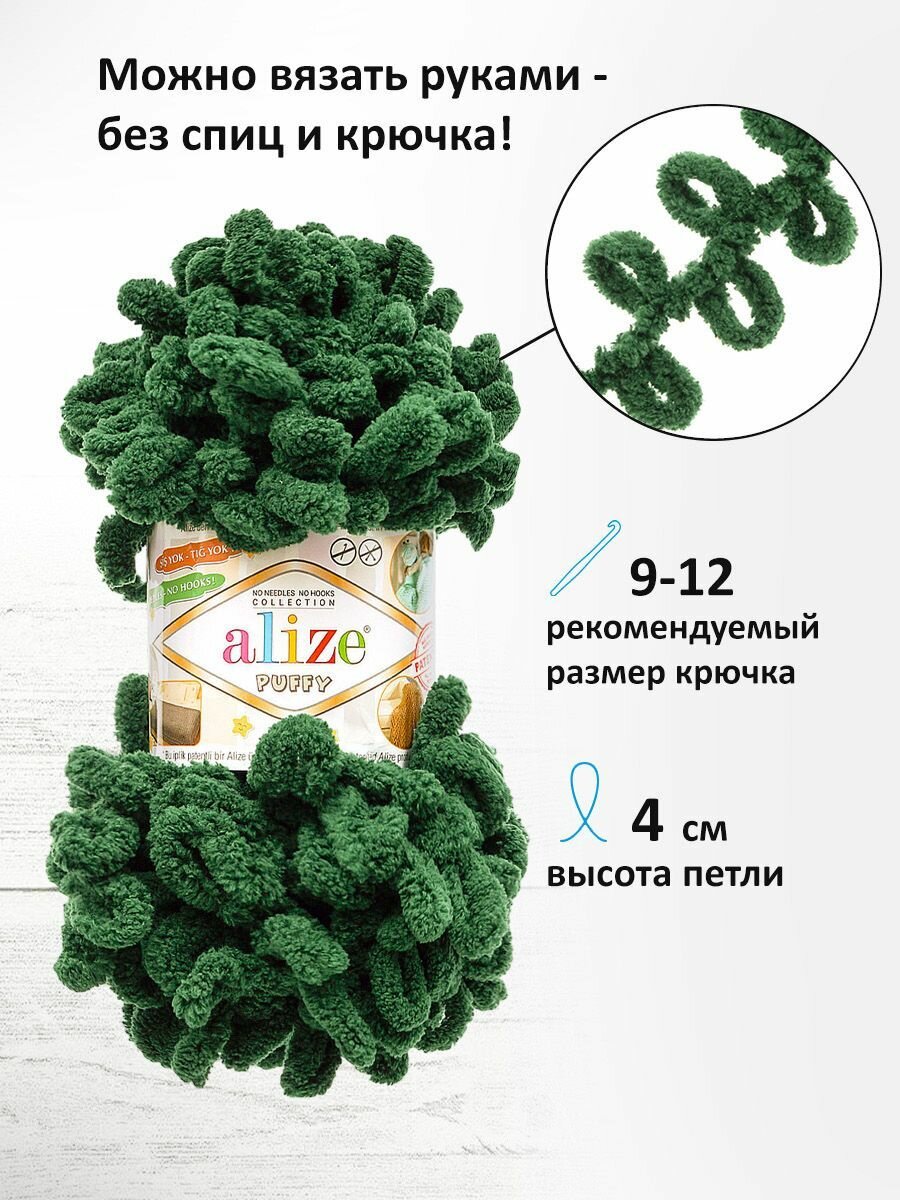 Отзывы на Пряжа для вязания руками с готовыми петлями ALIZE 'Puffy' 100г, 9м (30 зеленый изумруд), 5 мотков