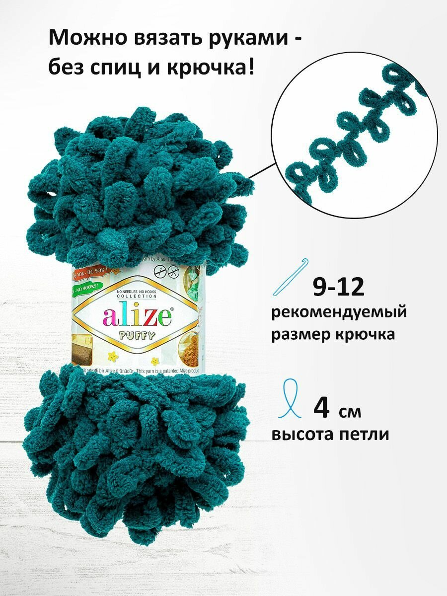 Пряжа для вязания руками с готовыми петлями ALIZE 'Puffy' 100г, 9м (426 зеленый мох), 5 мотков информация: