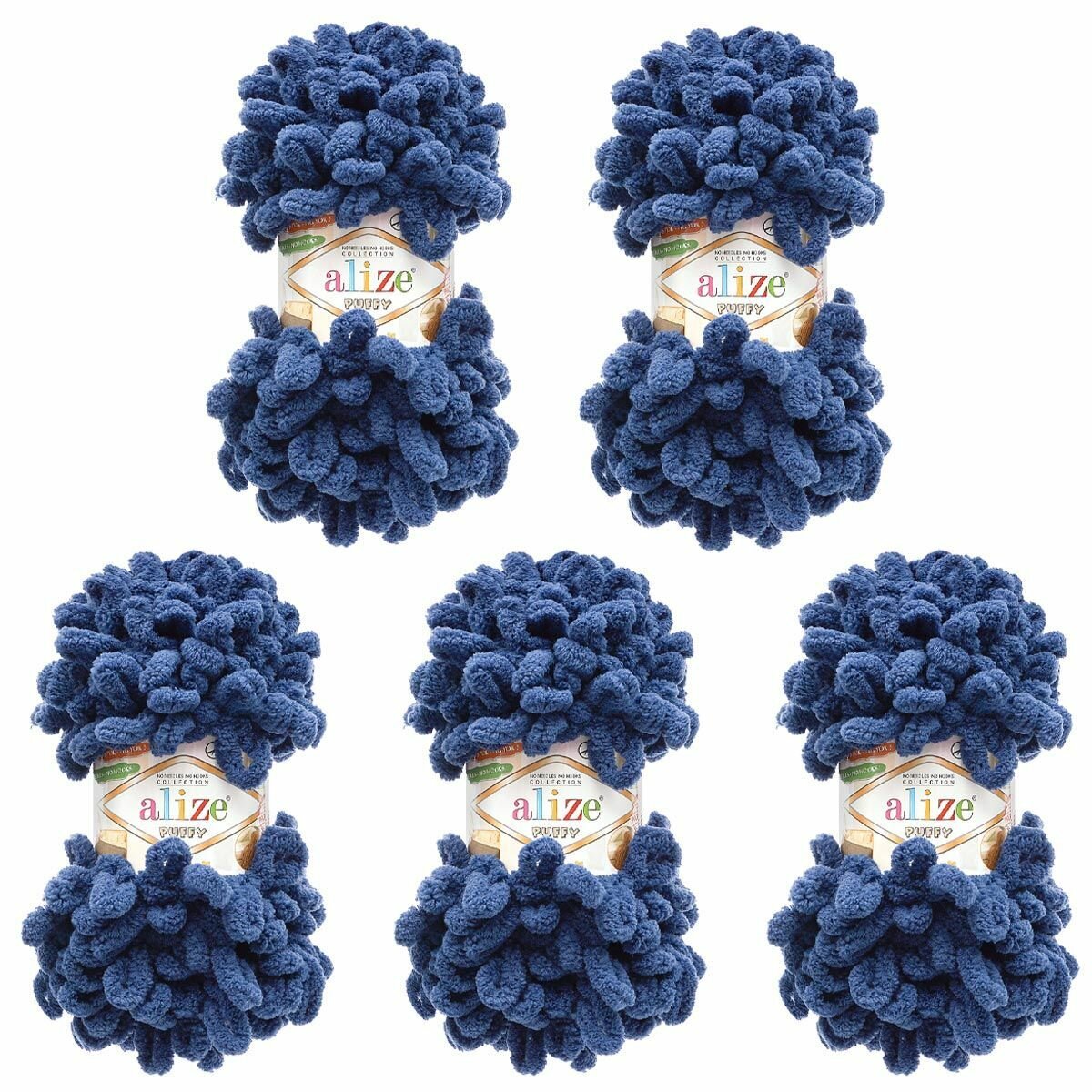 10 цен на Пряжа для вязания руками с готовыми петлями ALIZE 'Puffy' 100г, 9м (215 чернично-синий), 5 мотков