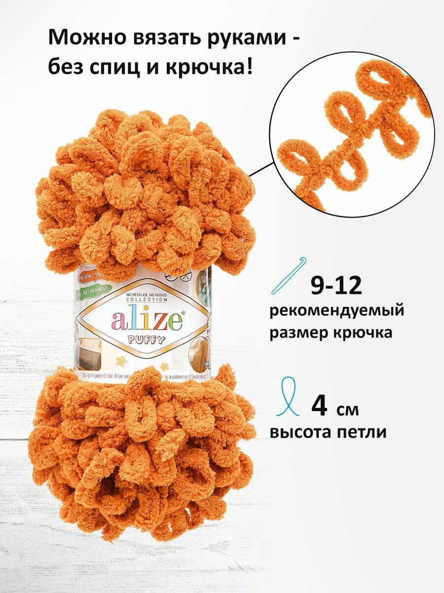 Пряжа для вязания руками с готовыми петлями ALIZE 'Puffy' 100г, 9м (234 тыквенный), 5 мотков информация: