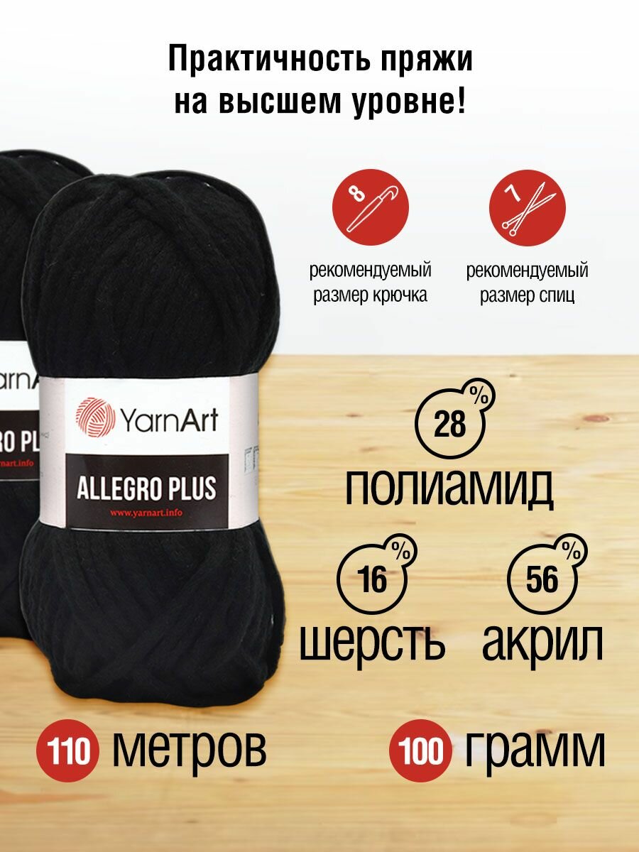 Пряжа для вязания YarnArt 'Allegro Plus' 100г, 110м (шерстъ, полиамид, акрил) (713 черный меланж), 5 мотков информация: