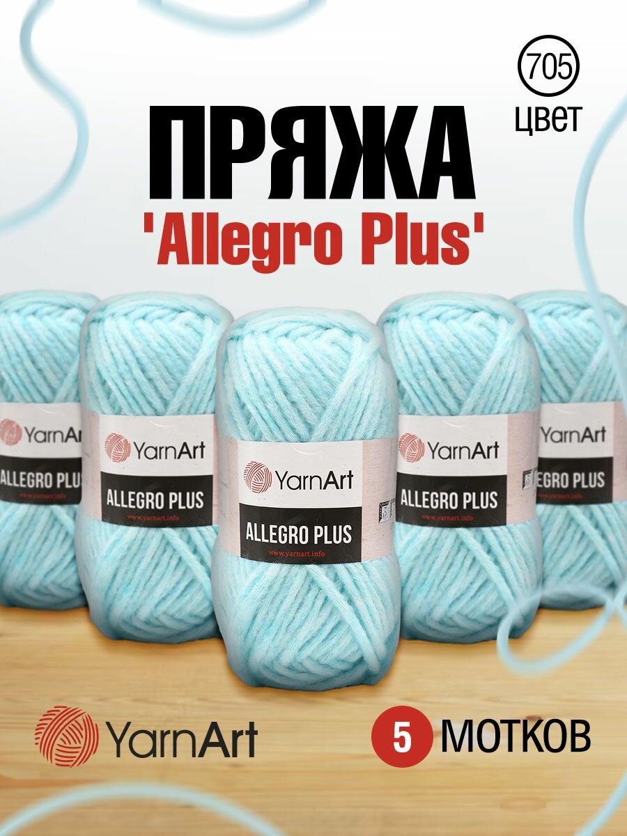 Пряжа для вязания YarnArt 'Allegro Plus' 100г, 110м (шерстъ, полиамид, акрил) (705 светло-голубой меланж), 5 мотков информация: