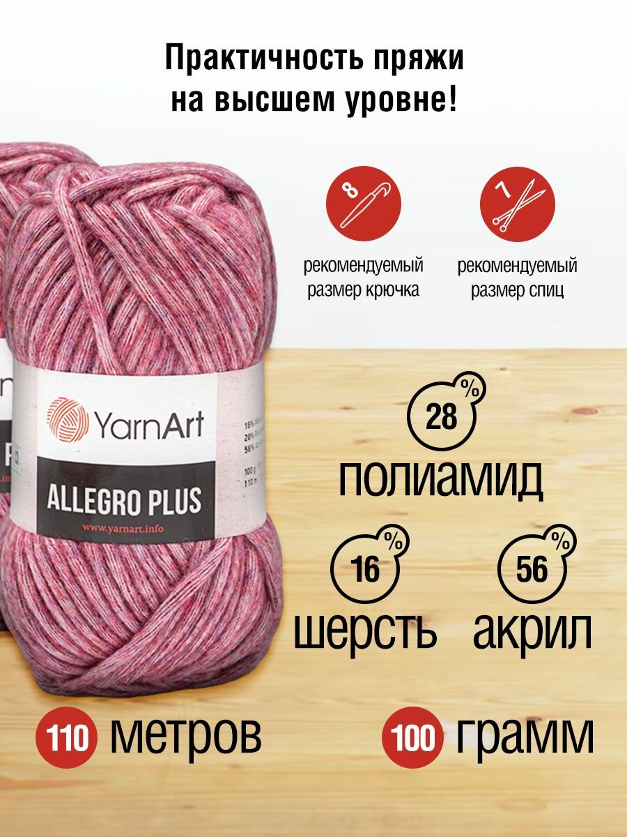 Пряжа для вязания YarnArt 'Allegro Plus' 100г, 110м (шерсть, полиамид, акрил) (702 темно-розовый меланж), 5 мотков информация: