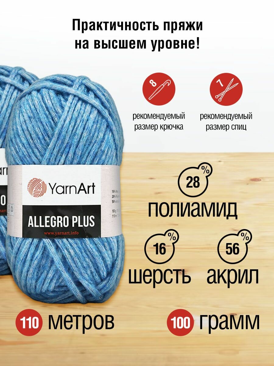 Пряжа для вязания YarnArt 'Allegro Plus' 100г, 110м (шерсть, полиамид, акрил) (708 голубой меланж), 5 мотков информация: