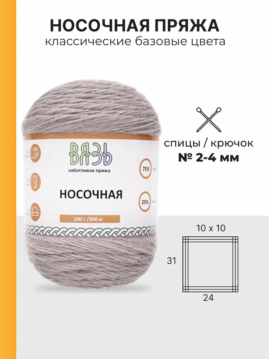 Отзывы на Пряжа для вязания Вязь 'Носочная' 100г, 390м (75% шерсть, 25% нейлон) (03 светло-серый), 3 мотка