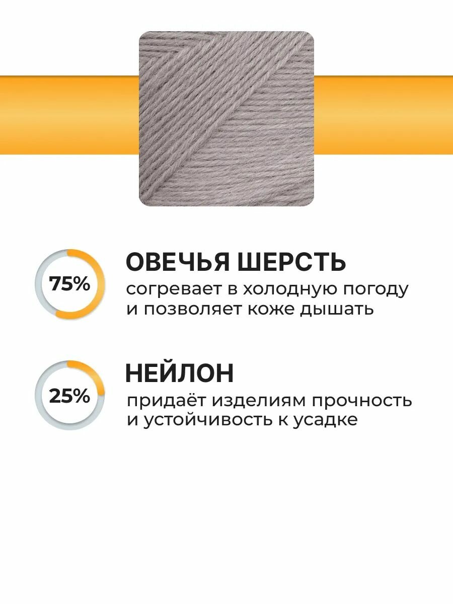 Пряжа для вязания Вязь 'Носочная' 100г, 390м (75% шерсть, 25% нейлон) (03 светло-серый), 3 мотка информация:
