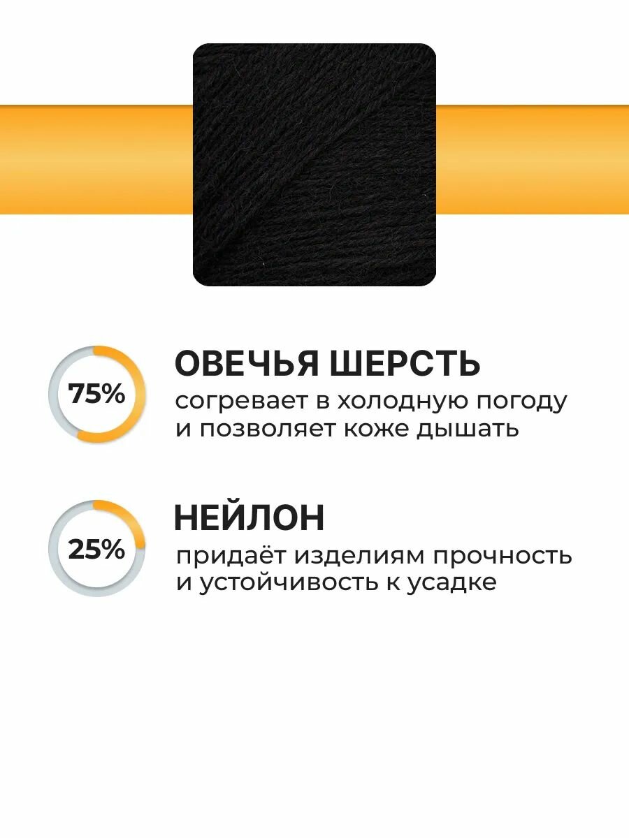 Пряжа для вязания Вязь 'Носочная' 100г, 390м (75% шерсть, 25% нейлон) (04 черный), 3 мотка информация: