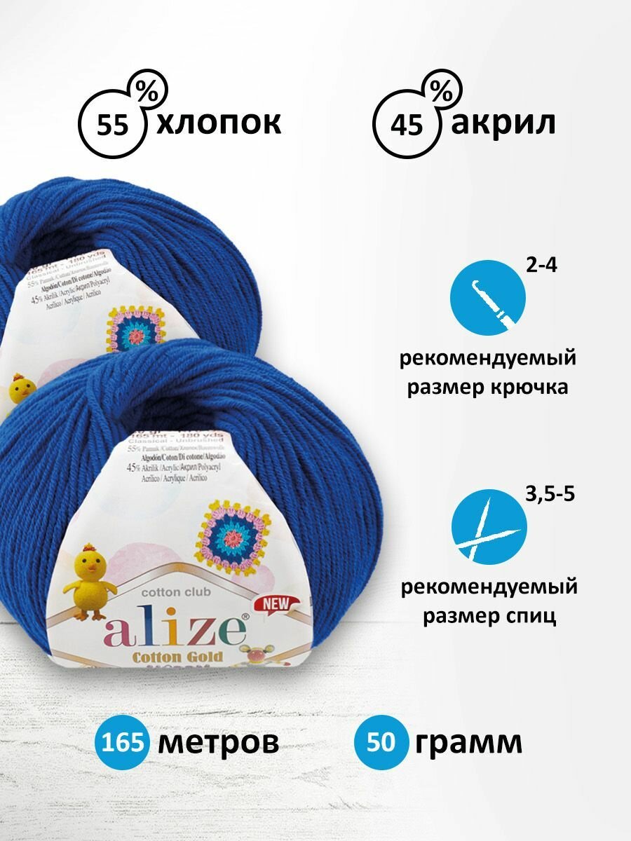 Пряжа для вязания ALIZE 'Cotton Gold Hobby NEW', 50г, 165м (55% хлопок, 45% акрил) (141 василёк), 10 мотков информация: