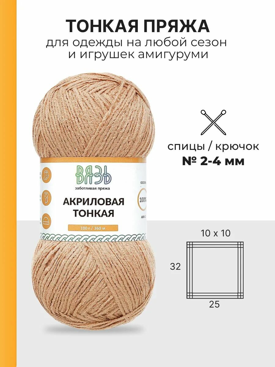 10 цен на Пряжа для вязания Вязь 'Акриловая тонкая' 100г, 360м (100% акрил) (818 светло-коричневый), 3 мотка