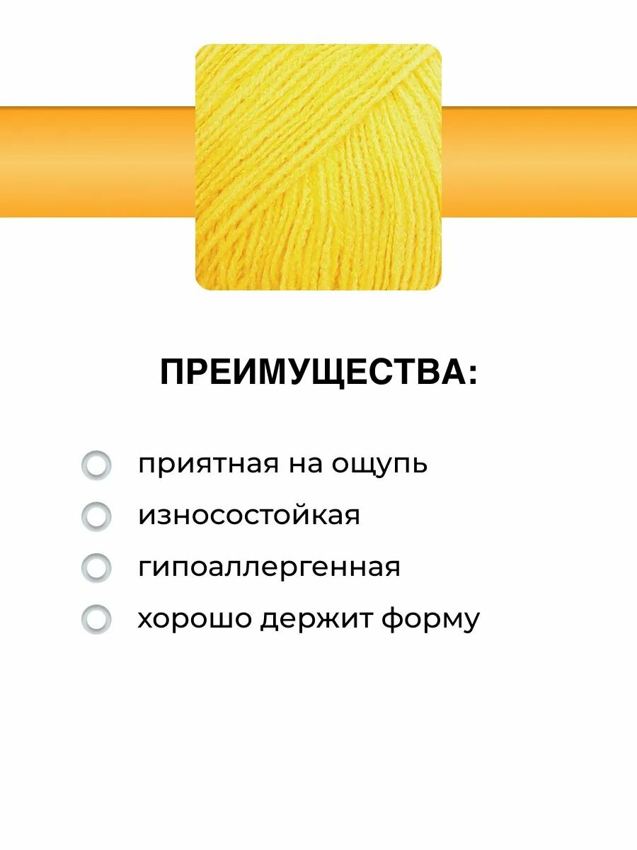 Пряжа для вязания Вязь 'Акриловая тонкая' 100г, 360м (100% акрил) (340 желтый), 3 мотка информация: