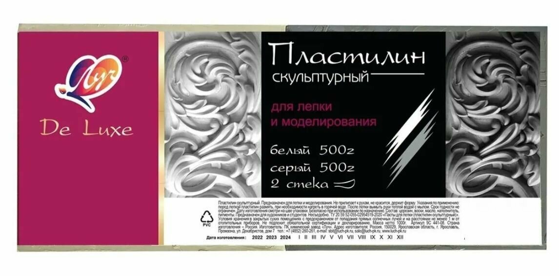 Пластилин скульптурный, 1000 гр 2 цвета (белый/серый), 2 стека информация:
