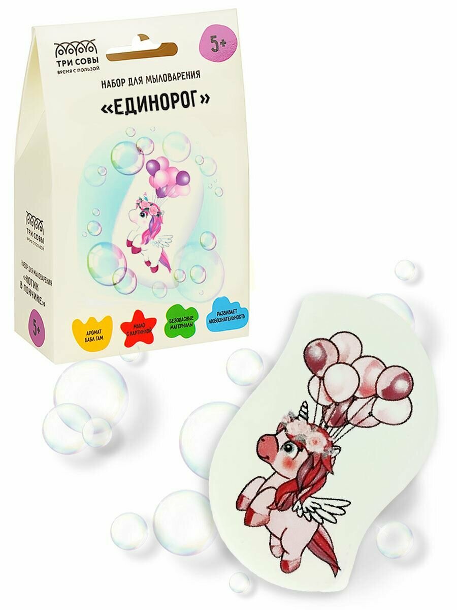 3 шт. Набор для мыловарения ТРИ совы "Единорог", 1 мыло с картинкой, картонная коробка
