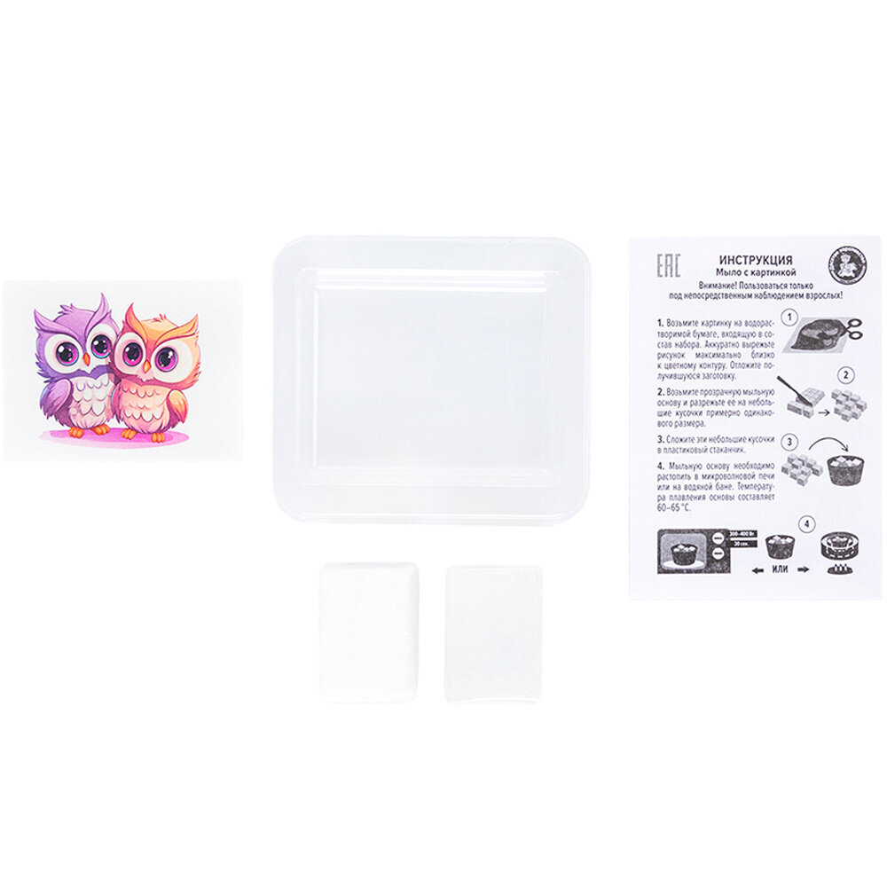 Комплект 9 шт, Набор для мыловарения ТРИ совы "Совушка", 1 мыло с картинкой, картонная коробка