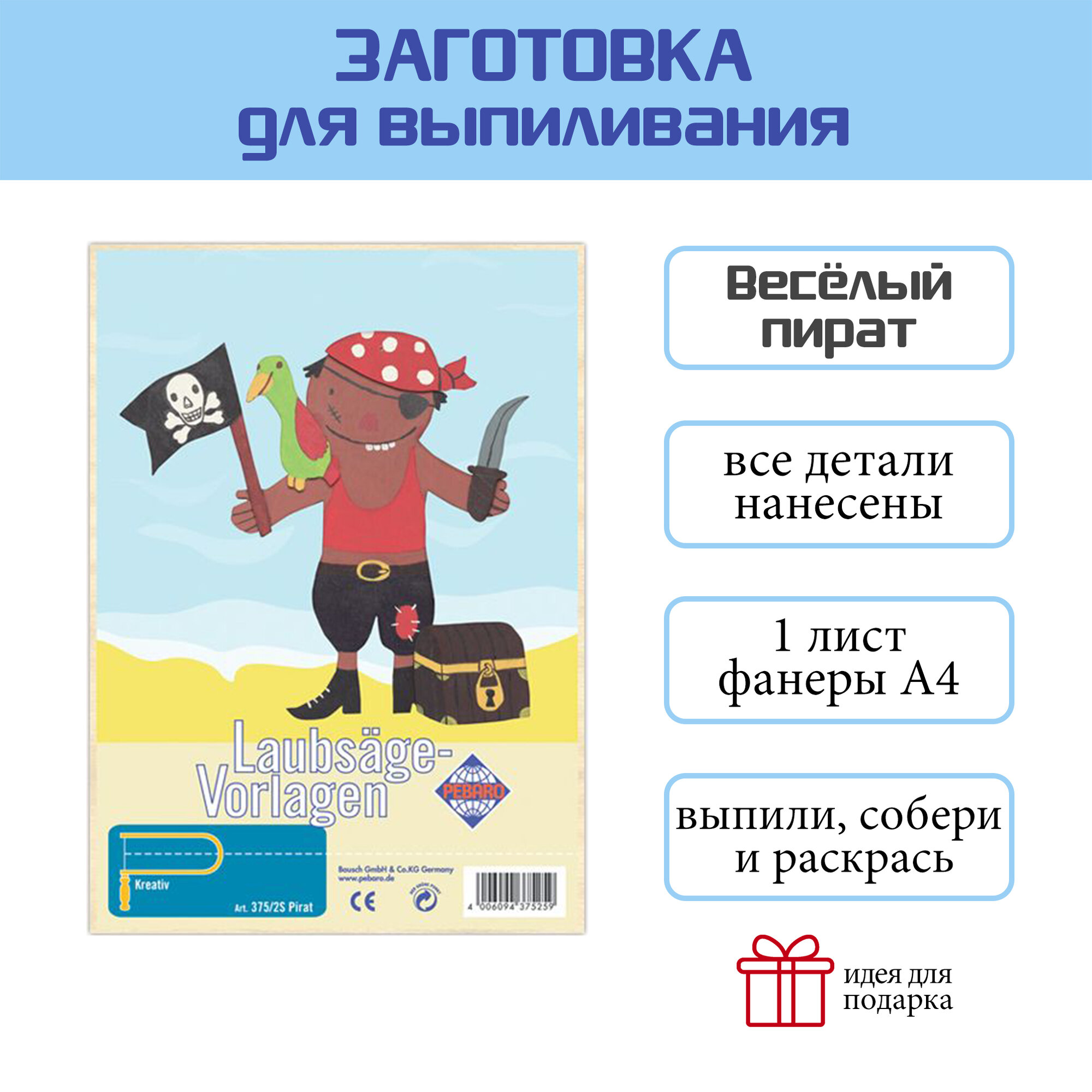 Заготовка из фанеры Веселый пират" для выпиливания лобзиком (375/2S)" информация: