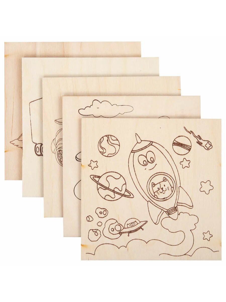 4шт Заготовки деревянные для выжигания "Сказочные мотивы",