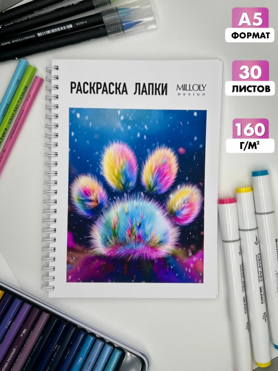 Раскраска антистресс для детей и взрослых "Лапки" информация: