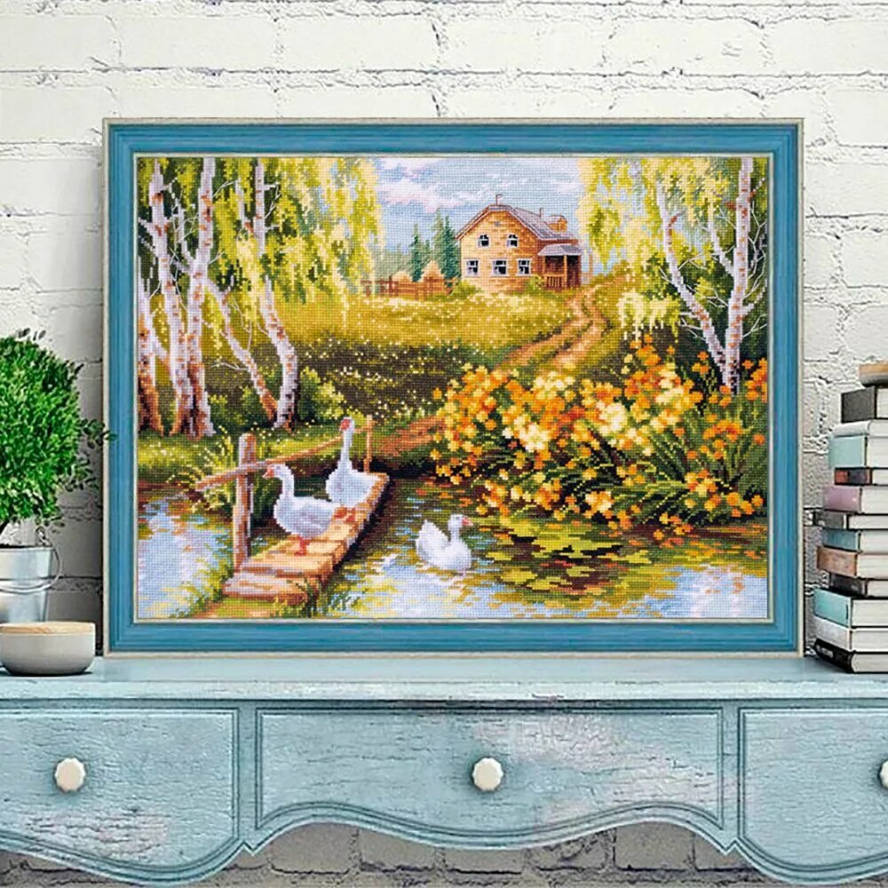 10 цен на Набор для вышивания Чудесная Игла 110-331 "Деревенский пруд" 40*31см