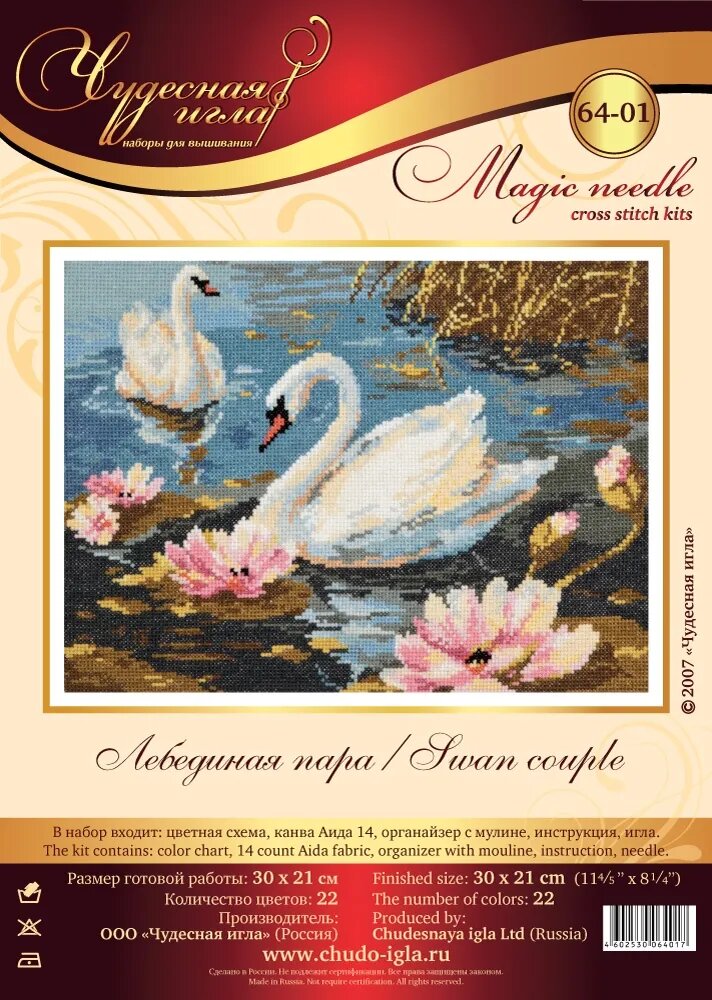 Набор для вышивания Чудесная Игла 64-01 "Лебединая пара" 30*21см информация: