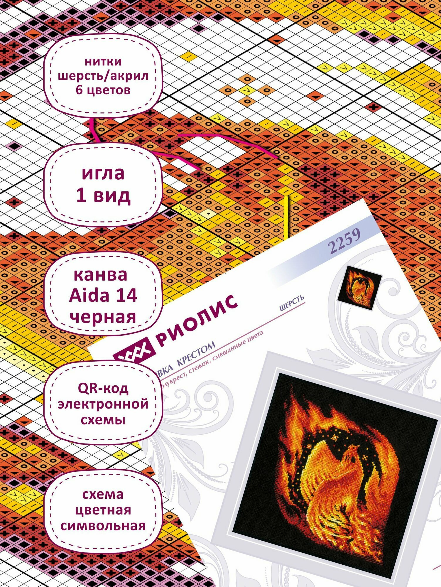 Набор для вышивания крестом Риолис, вышивка крестиком "Пламя феникса", 20*20см, 2259 информация: