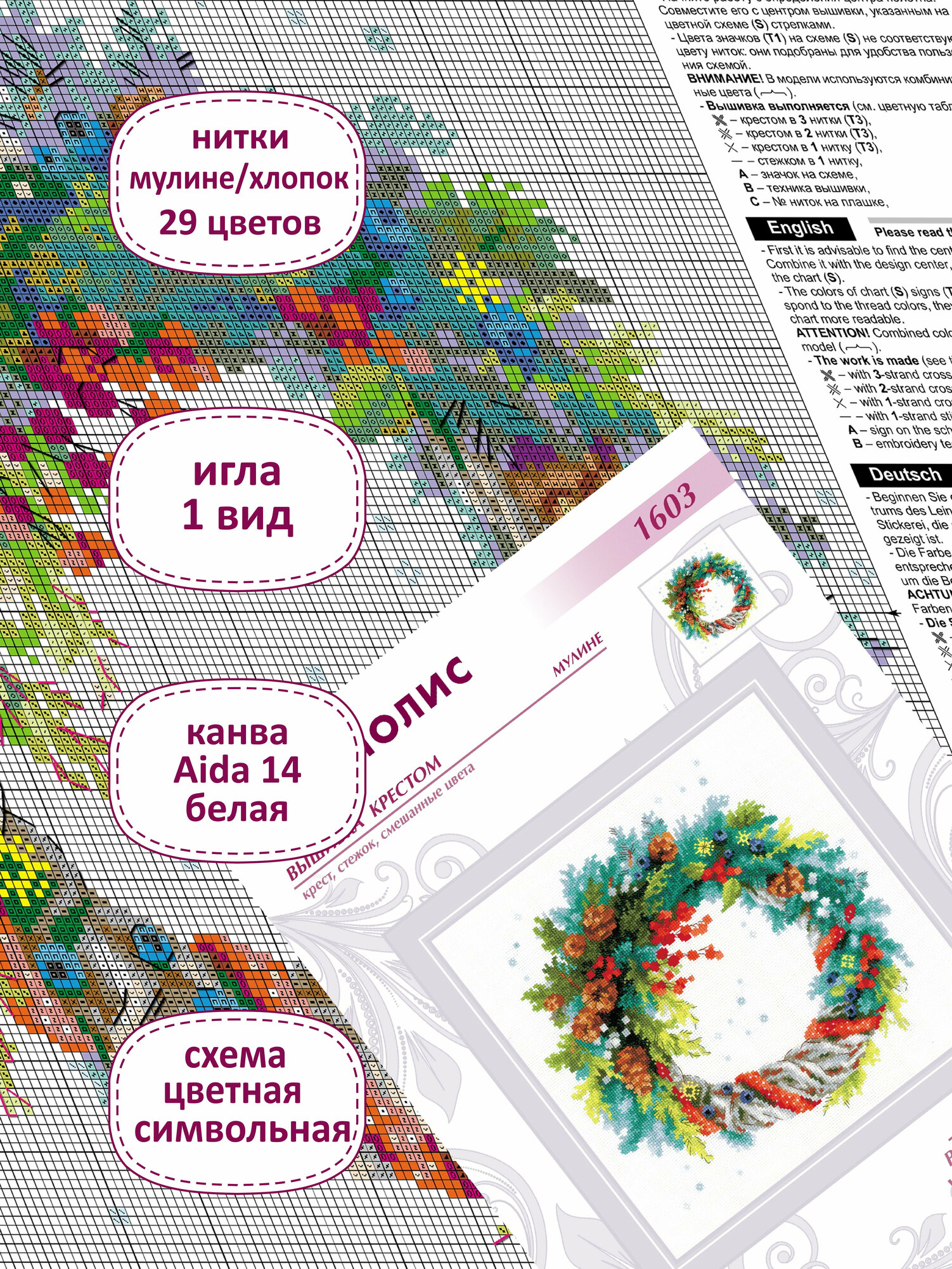 Набор для вышивания крестом Риолис, вышивка крестиком "Венок с голубой елью", 30*30см, 1603 информация: