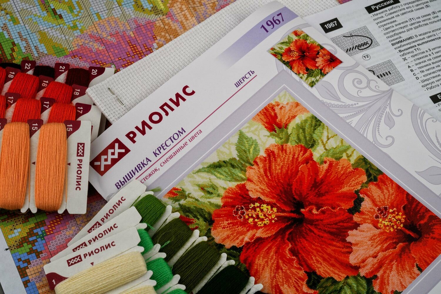 10 цен на Набор для вышивания крестом Риолис, вышивка крестиком "Гибискус", 40*50см, 1967