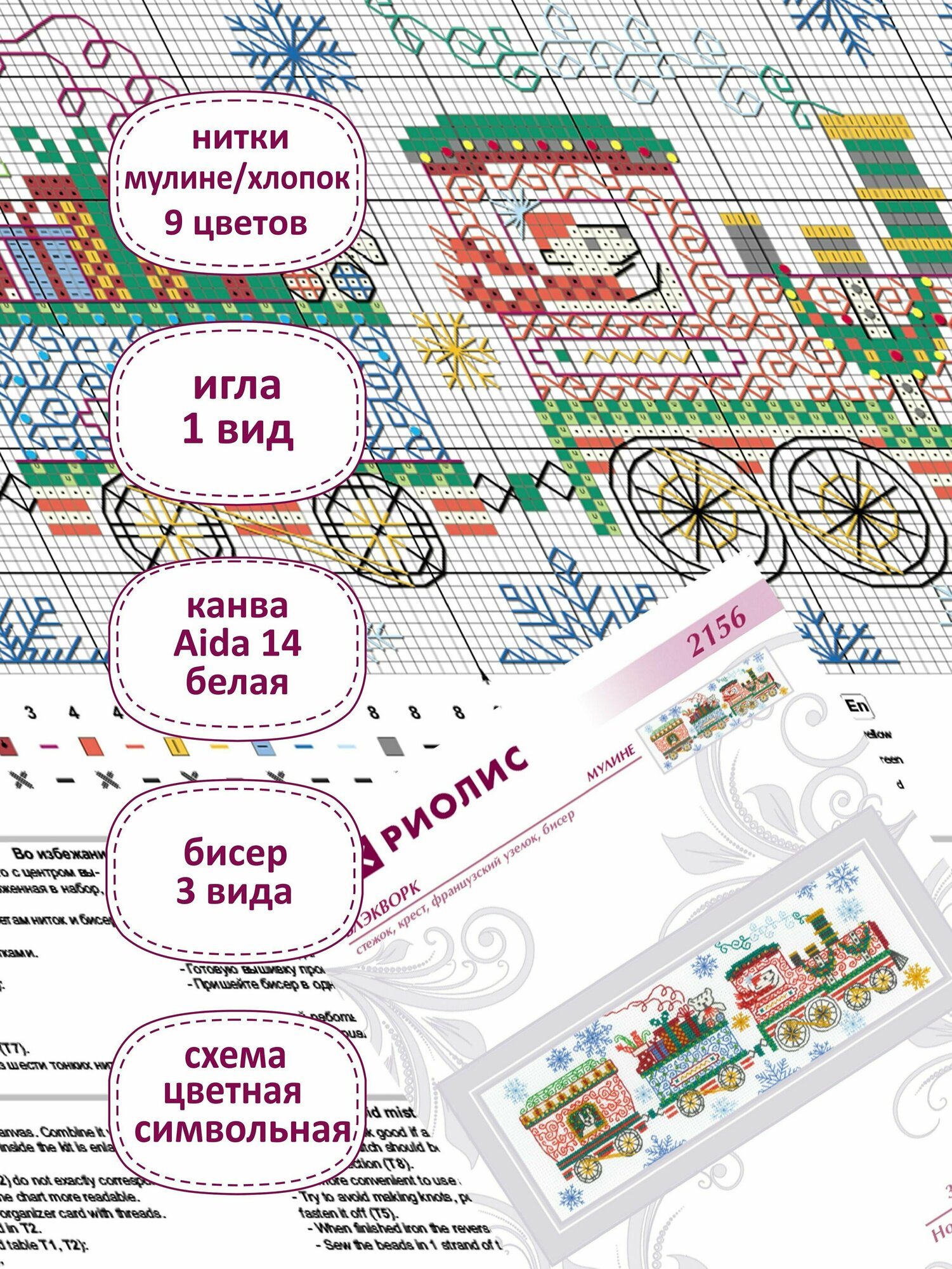 Набор для вышивания крестом Риолис, вышивка крестиком "Новогодний поезд" , 30*10 см , 2156 информация: