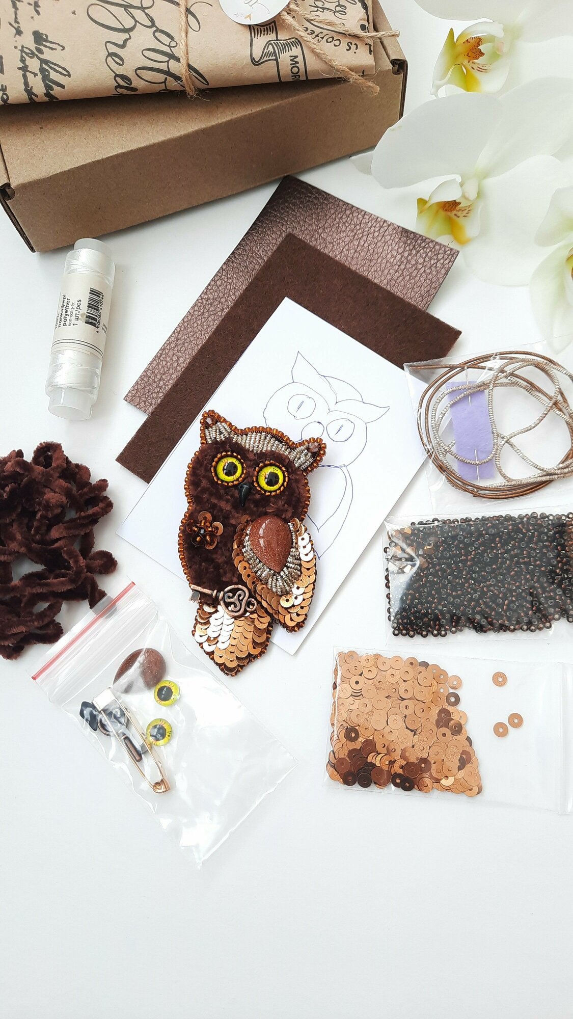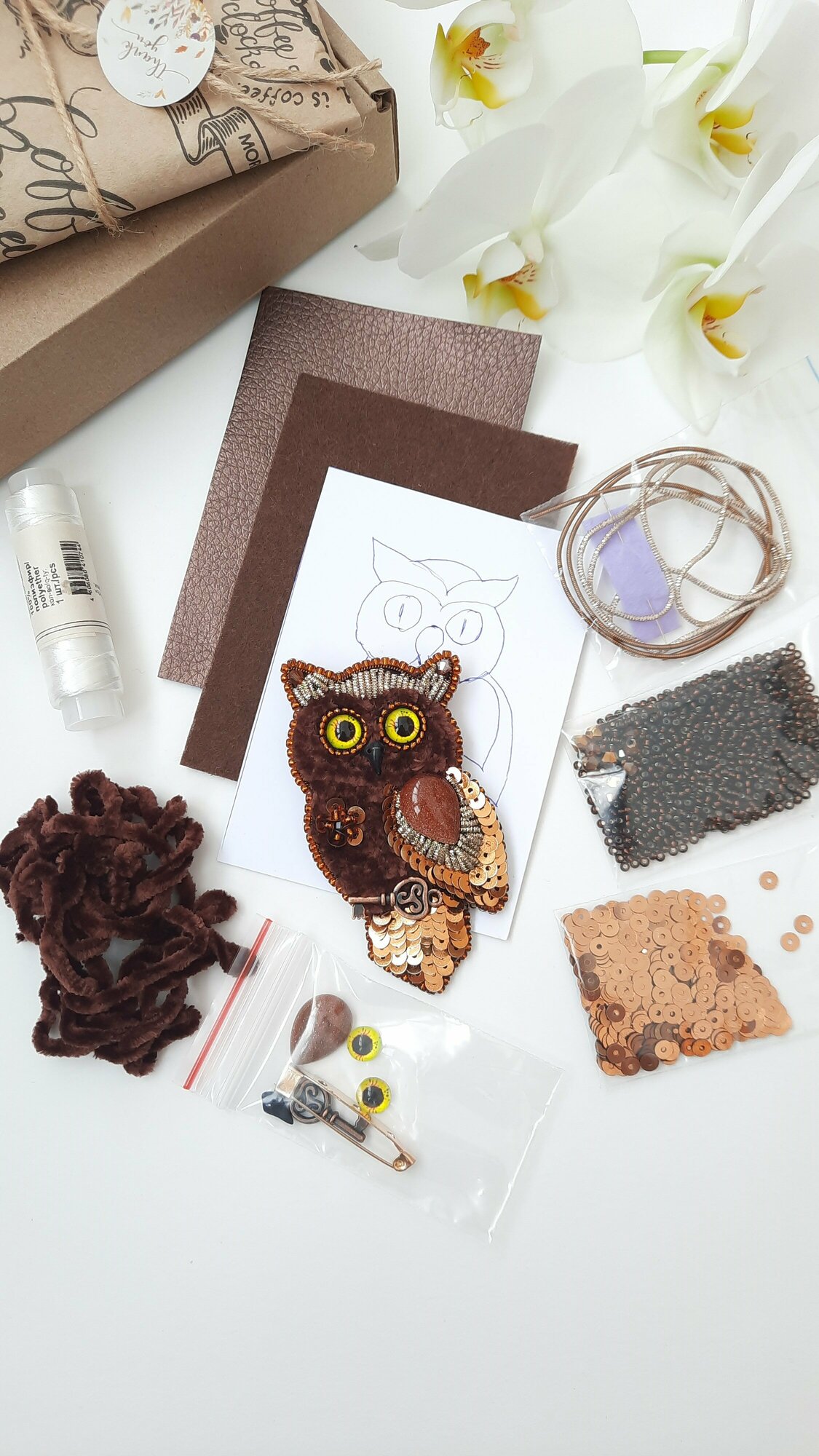 10 цен на Набор для вышивки броши "Коричневая сова"