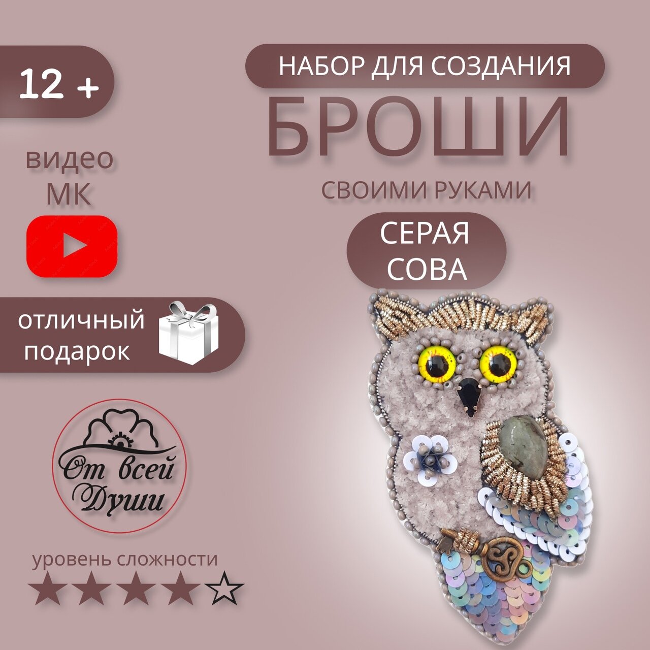 Набор для вышивания "Брошь "Серая Сова" от бренда "Мир Творчества" информация: