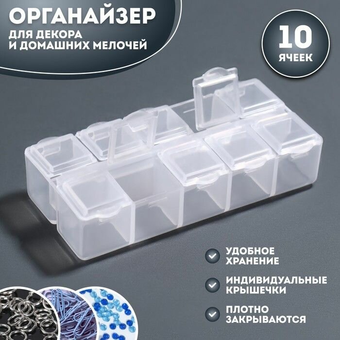 10 цен на Органайзер для декора, для бисера, 10 ячеек, прозрачный