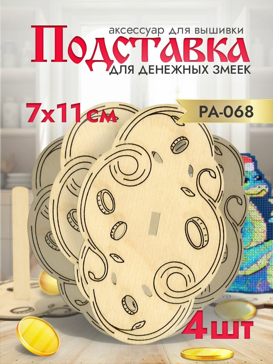 Набор деревянных подставок для вышивки Щепка Денежная, пробковое дерево, 11x7 см, 4 шт информация: