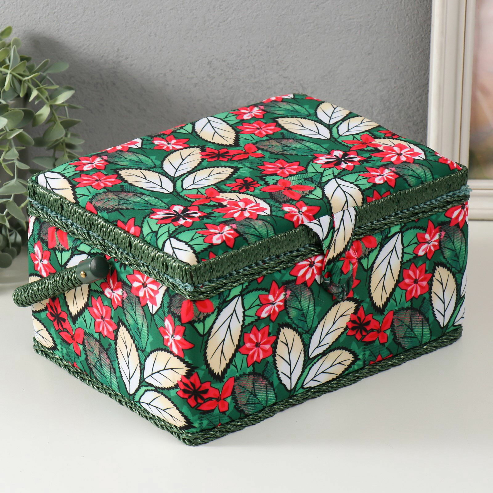 10 цен на Шкатулка для рукоделия и шитья "Пуансеттия на зелёном", хранение ниток, иголок, мелочи, 19х26х14.5 см