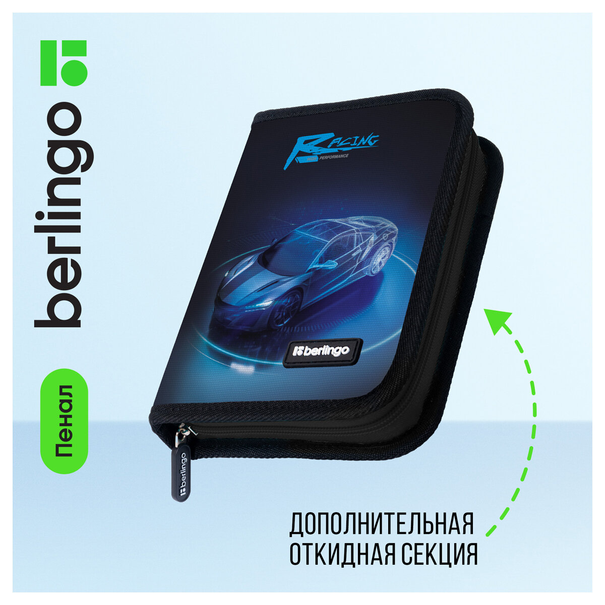 10 цен на Пенал 1 отделение, 200*140*40 Berlingo "Best race", дополнительная откидная секция, полиэстер