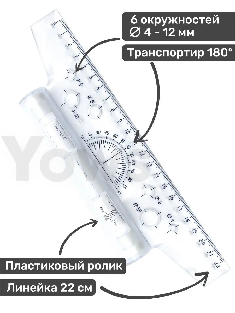 Рейсшина-транспортир, 22см, с пластиковым роликом информация: