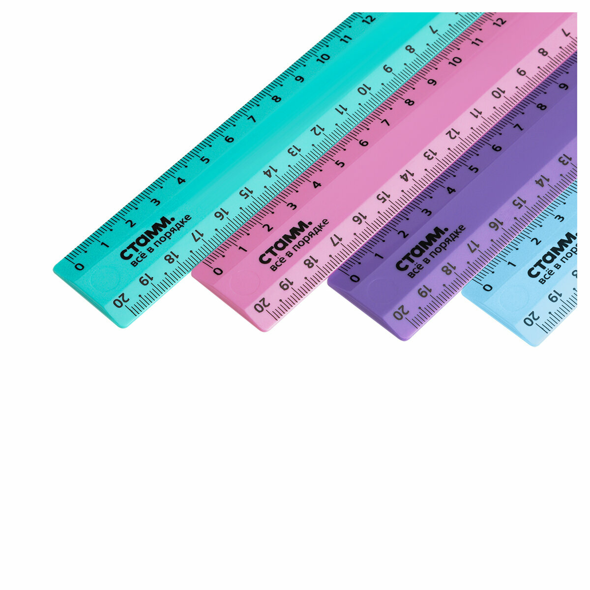 Отзывы на Линейка 20см СТАММ, пластиковая, 2 шкалы, непрозрачная, пастельные цвета, ассорти, европодвес, 5 штук